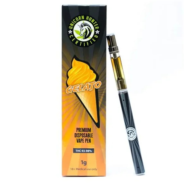 Buy Unicorn Hunter Gelato 1000mg Online in Australia, Unicorn Hunter – Gelato – THC Cartridge – 1 Gram are used in some of the best THC vape pens on the market today and we’re really proud to have them. With 1 full gram of premium distillate and a THC level of 93-98% this one hits hard.